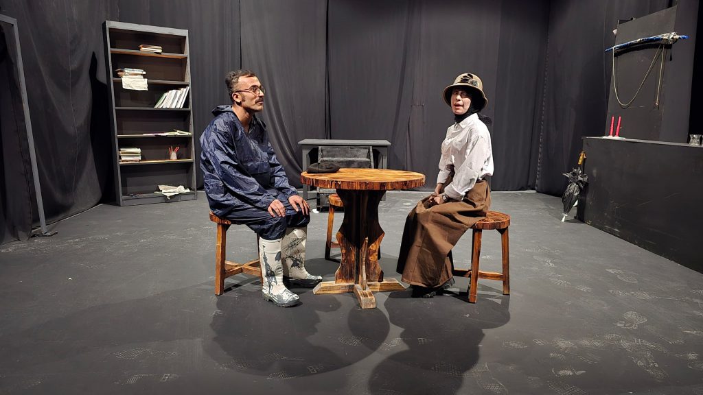 نویسنده: مسعود هاشمی نژاد/ کار گردان: حسن کریم نژاد/ مشاور کارگردان : ساسان شکوریان و احسان مرادی/ بازیگران:  بهنام خانبازی، معصومه جهان پور، پریا کرمی/بازیگردان: اورانوس شرافت/طراحی صحنه: حسن کریم نژاد و و بهنام خانبازی/طراحی نور: حسن کریم نژاد / موسیقی: جلال مهدوی / طراحی لباس: معصومه جهان پور/ مدیر گروه:  عزیزاله احمدی