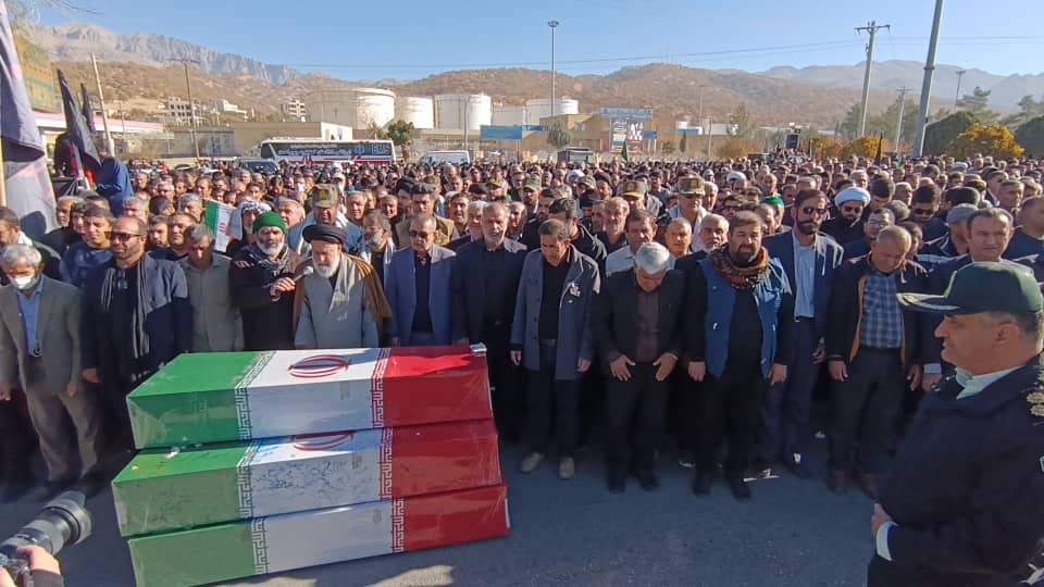 در این مراسم که یداله رحمانی استاندار کهگیلویه و بویراحمد حضور داشت پیکر مطهر سه شهید تا امامزاده مختار بر دستان مردم تشییع شد و سه شهید خوشنام به تهران انتقال یافت.